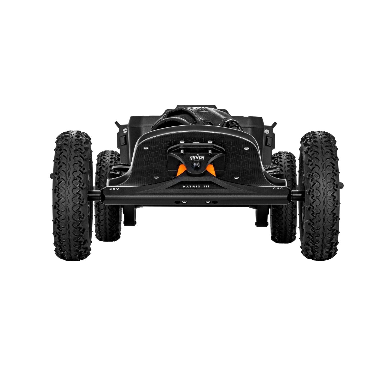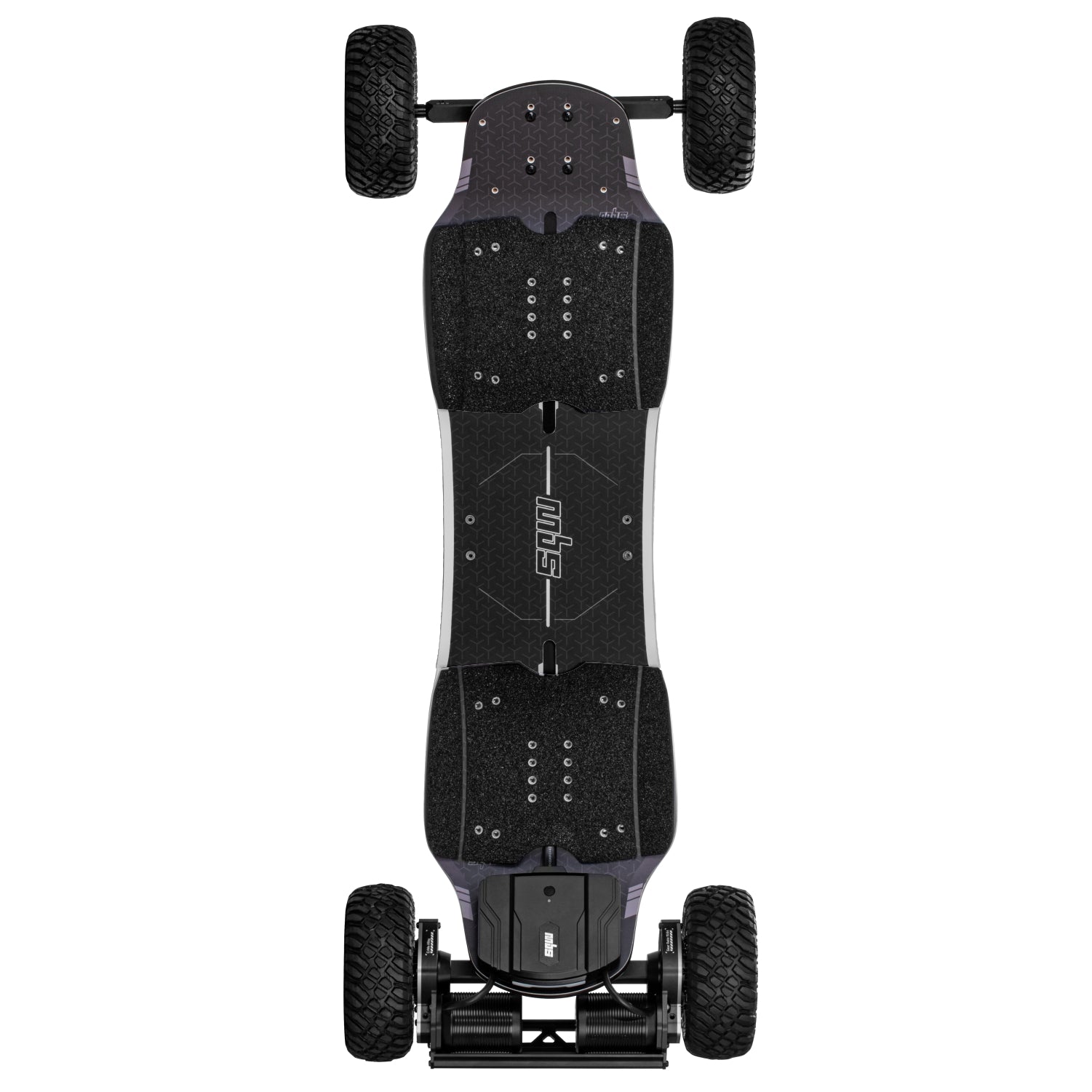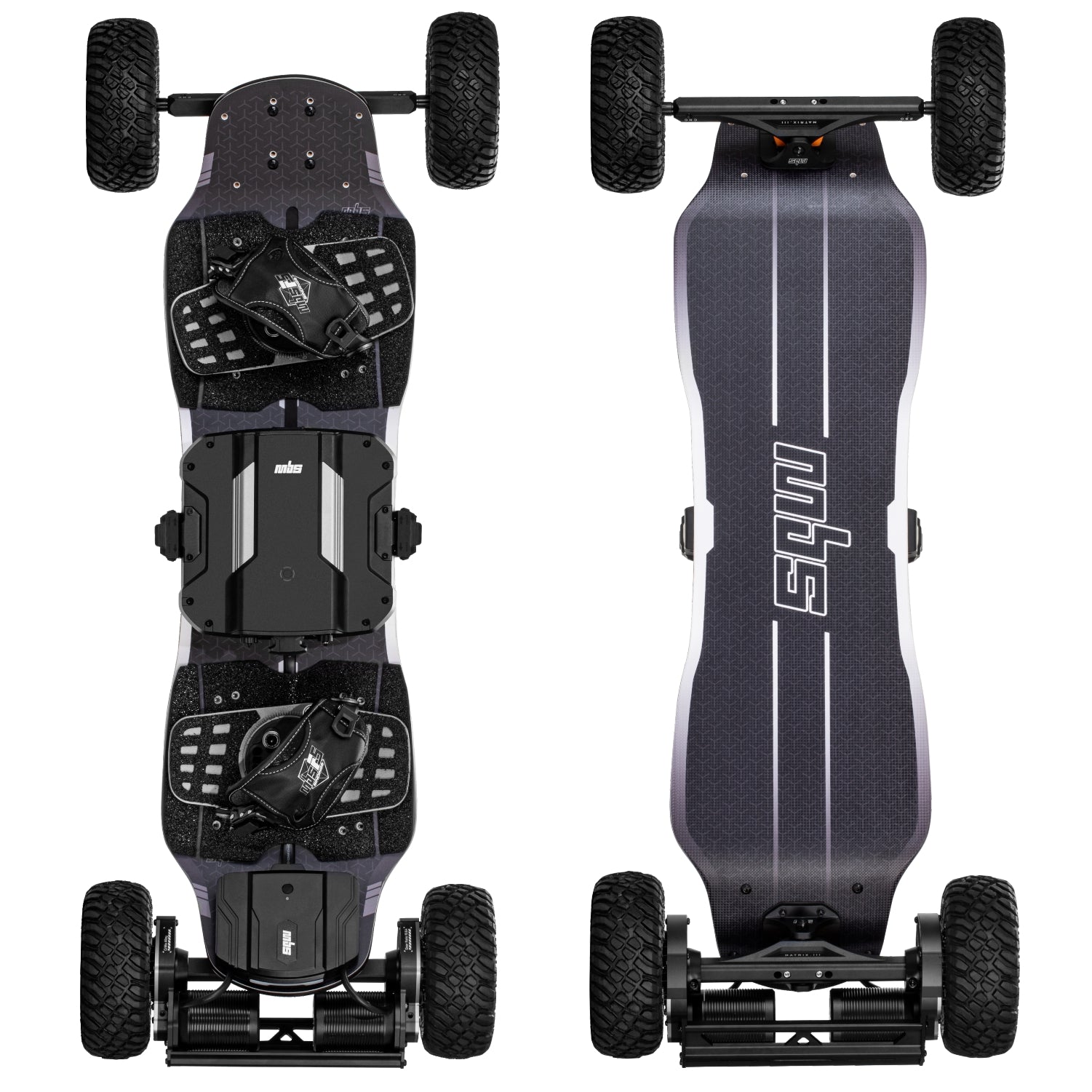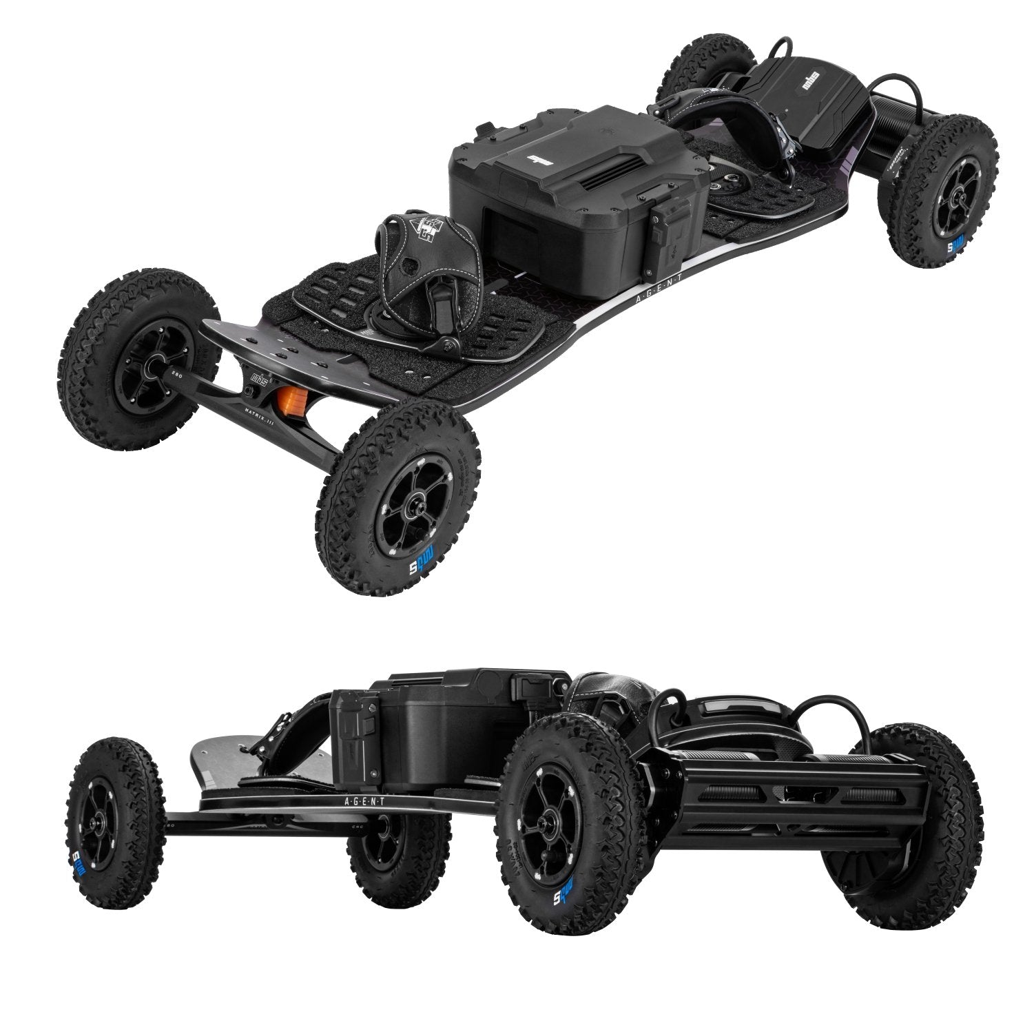 The MBS AGENT EXPLORER electric mountain board - Equipped with NEW monster truck style 200x70 EXPLORER tires on indestructible MBS RockStar Pro II XL aluminum hubs the MBS AGENT EXPLORER bursts out of the box ready to tame the wildest you can find, and let's you go the extra mile to find it with it's 1080Wh quick-swap battery pack. Want to go even further? Add as many extra batteries as your budget allows, or just break the bank and hit the road.